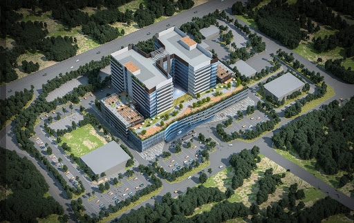 Quy mô: 1 tầng hầm, 12 tầng nổi, 1000 giường, 91.000m2 sàn